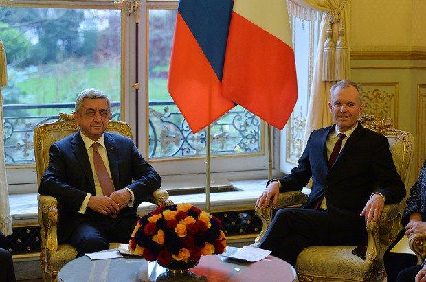 Նախագահ Սարգսյանը բարձր է գնահատել Ֆրանսիայի` որպես ԵԱՀԿ Մինսկի խմբի համանախագահող երկրի ջանքերը ԼՂ հիմնախնդրի խաղաղ կարգավորման ուղղությամբ՝ այդ համատեքստում կարեւորելով ֆրանսիացի խորհրդարանականների այցերը Արցախ, ինչը, նրա կարծիքով, անգնահատելի նպաստ է բերում Արցախի խնդրի արդարացի կարգավորման գործին, բացահայտում` Արցախի վերաբերյալ Ադրբեջանի կողմից տարածվող կեղծիքը: