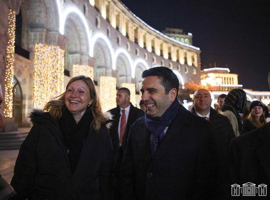 Ֆրանսիայի Ազգային ժողովի նախագահ Յաել Բրաուն-Պիվեի հետ զբոսանք գիշերային Երևանում: Այս մասին իր ֆեյսբուքյան էջում գրել է ՀՀ ԱԺ նախագահ Ալեն Սիմոնյանը եւ լուսանկարներ հրամպարակել զբոսանքից:
