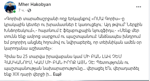 Մհեր Հակոբյանը գրում է․