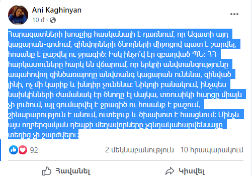 Հասարակական ակտիվիստ Անի Կաղինյանի ֆեյսբուքյան էջից