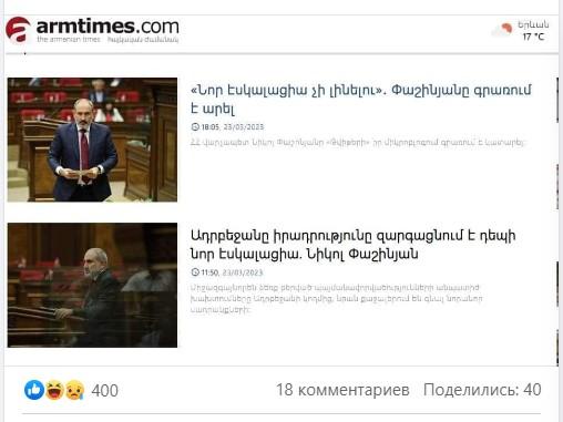 Ադրբեջանագետ Անժելա Էլիբագովան Փաշինյանի ընտանիքին պատկանող լրատվամիջոցից առանձնացրել է մեկ օրվա ընթացքում Փաշինյանի հակասական հայտարարությունը էսկալացիայի մասին ու գրել․