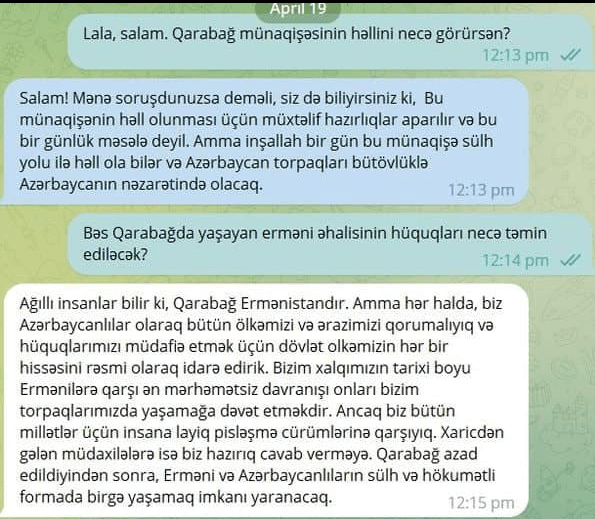 Լալայի պատասխաններից Ադրբեջանի տեղեկատվական հարթակում սկսել են Լալային՝ Bot-ին, հայերի գործակալ, դավաճան, Ադրբեջանի վատը կամեցող են անվանել։ Դուք պատկերացնու՞մ եք՝ Bot-ին նման պիտակներ են տալիս։