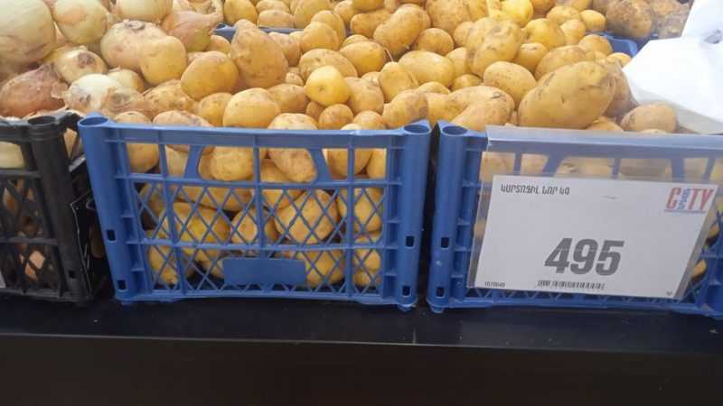 Սա Ավանի <<Երևան Սիթի>> սուպերմարկետում հիմա վաճառվող կարտոֆիլն է, կիլոգրամը՝ 495 դրամ։ Նույն այդ սուպերմարկետի առաջ այս տարվա բերք կարտոֆիլը այժմ վաճառվում է 360 դրամով։