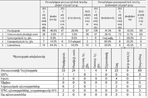 2023 թվականի ապրիլ ամսին օտարերկրացիները Հայաստանում գնել են 47 բնակարան, որը 2022 թվականի ապրիլի համեմատ պակաս է 41-ով կամ 46,6 տոկոսով։ Այս նույն ժամանակահատվածում նրանք վաճառել են 81 բնակարան։ Ուշագրավ է, որ օտարերկրացիները հատկապես ակտիվ սկսել են վաճառել իրենց հողերը(+14,8%) և անհատական բնակելի տները(+21,%): Ընդհանուր առմամբ, 5,1 տոկոսով ավելի շատ անշարժ գույք են վաճառել։