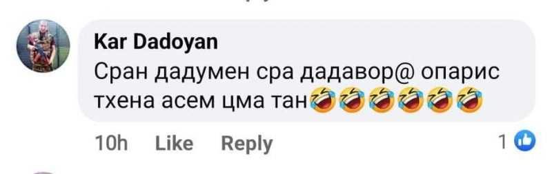 Hraparak.am-ը գրում է. Երեկ Հակակոռուպցիոն դատարանի դատավոր Սարգիս Դադոյանի որոշմամբ ՀՀԿ փոխնախագահ Արմեն Աշոտյանը 2 ամսով կալանավորվեց: Նիկոլ Փաշինյանի մոլի աջակիցներից մեկի գրառման ներքո մեկնաբանություն է գրել Կար Դադոյան օգտատերը` ասելով, որ Աշոտյանի կալանքի միջնորդությունը քննող դատավոր Սարգիս Դադոյանը իր հորեղբոր որդին է, և ինքը կարող է նրան ասել, որ Աշոտյանին «ցմահ տա»: