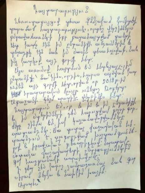 Այս առումով հայտնում եմ հետևյալը, իմ ընտանիքը` կինս, որդիս, հարսս այնքան կապ ունեն այդ գործի հետ, որքան որ 2018 թվականին հրապարակում ելույթ ունեցող Ռոբերտ Աբաջյանի կեղծ պապիկը վերջինիս հետ: Հայտարարում եմ, որ իմ և իմ ընտանիքի և իմ մտերիմների դեմ հարուցված բոլոր գործերը շինծու են, իսկ կալանավորվածները՝ պատանդներ: