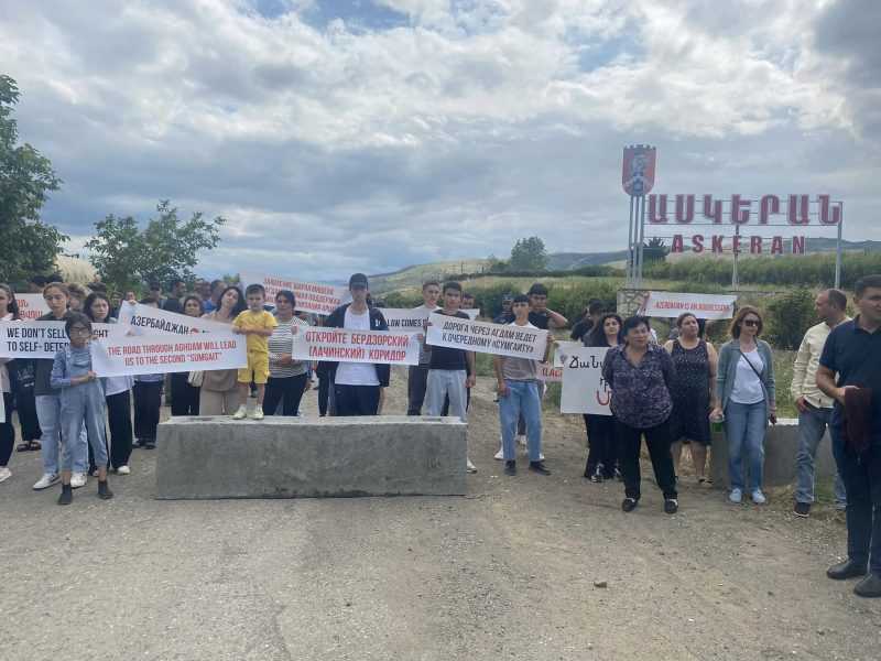 «Բողոքի ակցիա Ասկերան-Ակնա(Աղդամ) ճանապարհին եւ բետոնե արգելապատնեշների տեղադրում»,- նշել է նա։
