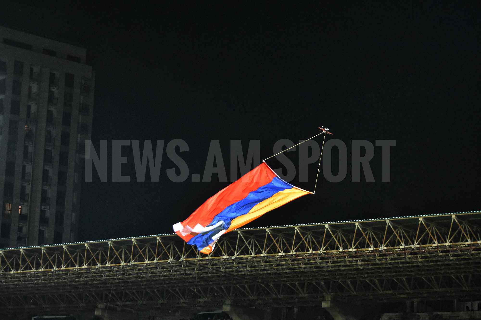 Առաջին խաղակեսի վերջնամասում խաղադաշտի վրա դրոնով սավառնեց Արցախի դրոշը։ Հանդիպումը մի քանի րոպե ընդհատվեց։