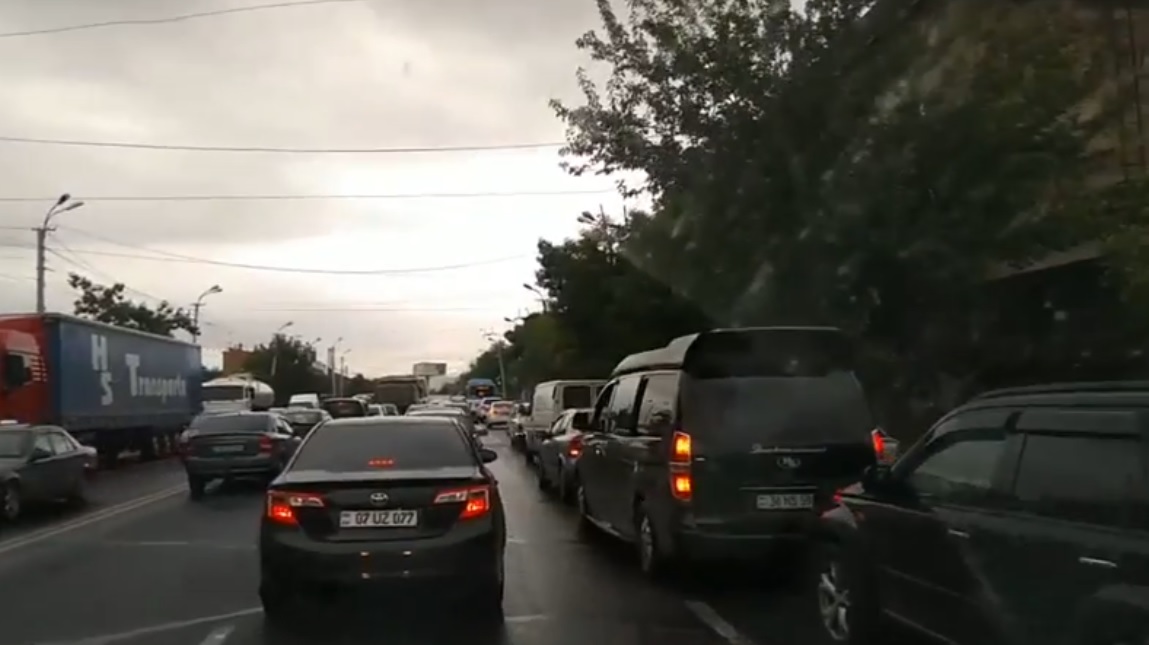 Լրագրող Նարինե Կիրակոսյանը տեսանյութ է տարածել իր էջում՝ կից գրառմամբ. «9 բալանոց խցանումներ են Երևանում։ Քաղաքը կանգնած է»: