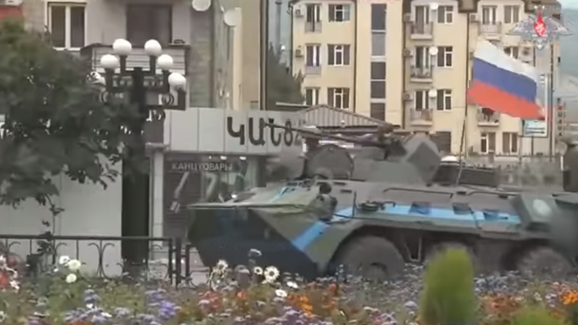 Ռուս խաղաղապահներն են, վերահսկում են էթնիկ զտման ենթարկված Արցախի մայրաքաղաք Ստեփանակերտի փողոցները: