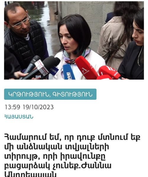 Մեր կրթության եւ գիտության Նախարարի երեխան սովորում է արտասահմանյան ԲՈՒՀ֊ում, ինչը, իհարկե, նորմալ է` նամանավանդ, եթե այդ գիտելիքները պիտի ծառայեցվի մեր երկրին, բայց ուզում եմ հարց տալ հատկապես նրանց, նրանց կողմից ուղղորդվող քարոզիչներին եւ ազդեցության տակ, երկակի ստանդարտներով առաջնորդվող, քաղաքացիներին` միթե՞ նորմալ է, երբ թիրախավորում են նման հարցադրումներով ու մտնում այսպես ասած` չթույլատրելի տիրույթ, ինչպես նախարարն է նշում, բայց քաղաքական օպոնենտներին, օրինակ` Մանե Թանդիլյանին թիրախավորելը նորմալ նաեւ պարտադիր երևույթ էր. ամենավերջին ու զզվելի ստերով լցնելով քաղաքացիների` հատկապես դատարկ ուղեղները։
