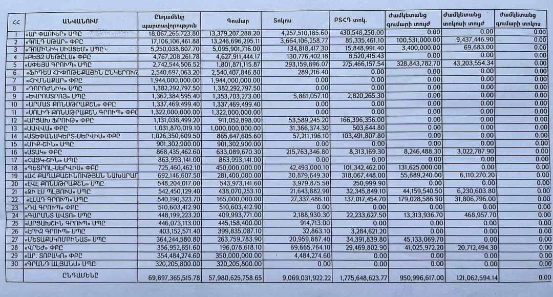 Ինձ էս ցուցակների մեջ իրական շահառուների մասով ընդհանրապես չի զարմացնում Սերժ Սարգսյանի փոքր փեսայի լինելու հանգամանքը կամ ասենք Արթուր Աղաբեկյանի, որոնք միլիարդավոր փոխառություններ են վերցնում, այլ հատկապես հետաքրքիր էր Սամվել Բաբայանի անվան հետ կապվող 18-րդ եւ 20-րդ համարի տակ գտնվող ընկերությունների հանգամանքը մոտ 1,3 մլրդ, դե էլ անիմաստ է խոսել ենթադրելի ունեցած կապիտալի մասին, որն հաստատ տասնապատիկ ավելի շատ է, սա այն դեպքում դեռ ինչի մասին մեզ հայտնի է։