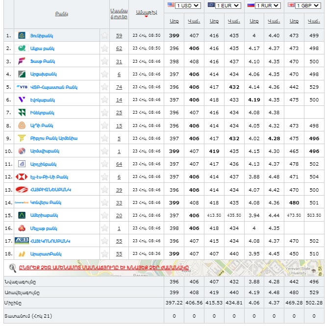 Տարադրամի փոխարժեքն այսօր