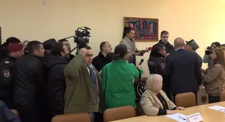 Առավոտից համայնքապետարանի դիմաց մեծ թվով ոստիկաններ են հավաքված, որոնք թույլ չեն տալիս համայնքապետարանի աշխատակիցներին, նաեւ ընդդիմադիր խմբակցությունների անդամներին մուտք գործել շենք: Դրսում հավաքվածները վանկարկում են «Թամազյան, Թամազյան»: