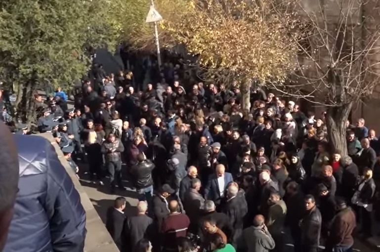Հավաքվածները շենքի ներսում գտնվող ավագանու ՔՊ անդամներին դուրս էին հրավիրում՝ գոռալով՝ «դա-վա-ճա՛ն, դա-վա-ճա՛ն»։