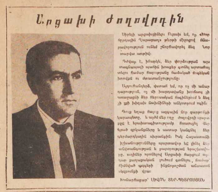 Գուցե ժողովուրդը, լռելյայն, համաձայն էր Լևոնի հետ, բայց այդ համաձայնությունը խլացվում էր Հայ դատի ինդուստրիայի, անպատասխանատու հայրենասիրության ու ազգակործան մաքսիմալիզմի աղմուկի մեջ»։