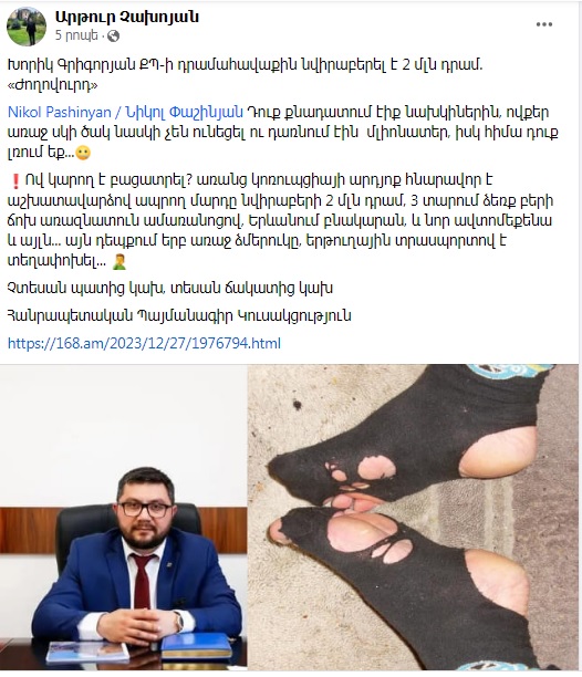 Արթուր Չախոյանը ֆեյսբուքյան իր էջում գրում է.