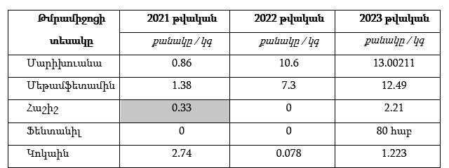 Հատկանշական է, որ հանրապետությունում առավել շրջանառվող թմրամիջոցների բացահայտումների մասով արձանագրվել է էական աճ, ինչը վերջին տարիների բացահայտումների լավագույն ցուցանիշն է: 2023 թվականին, ընդհանուր առմամբ, հայտնաբերվել և արձանագրվել է թմրամիջոցների և հոգեմետ նյութերի մաքսանենգության 373 դեպք:
