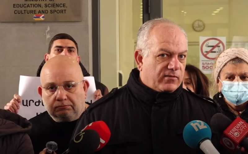 «Հայաստանի ժողովրդական շարժման» համակարգող Վազգեն Պետրոսյանը նշել է, որ դասագիքը խնդրահարույց է, և այն պետք է խոտանել, սակայն իրենց այս պահանջին ԿԳՄՍ նախարարը չի արձագանքում։ Այդ է պատճառը, որ նրանք այսօր հավաքվել են նախարարության շենքի մոտ` արդեն իսկ պահանջելով Ժաննա Անդրեասյանի հրաժարականը։