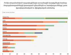 Ստորեւ ինֆոգրաֆիկայում ներկայացված է, թե ՀՀ մարզերում ինչպիսին է եղել բռնի տեղահանված արցախցիների բաշխվածությունը 2023-ի հոկտեմբերին եւ 2024-ի հունվարին, եւ թե մարզերից յուրաքանչյուրն ընդհանուր առմամբ որքան գումար է ծախսել նրանց առաջնային կարիքների համար (դեղին սյուներն արտացոլում են մարզում արցախցիների թիվը հոկտեմբերի դրությամբ, մոխրագույն սյուները՝ հունվարի դրությամբ։ Սեւ գծի գագաթներն արտացոլում են մարզպետարանների աշխատակազմերի կատարած ծախսերը՝ մլն դրամ արտահայտությամբ)։