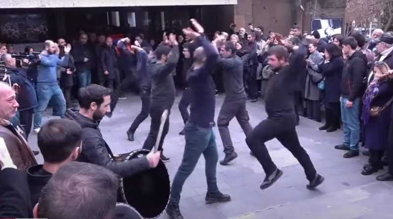 Երբ դագաղը դուրս բերեցին Կամերային երաժշտության տնից հնչեց զուռնան ու տղամարդիկ սկսեցին յարխուշտա պարել: