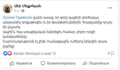 Կեցցե՜ մեր քաղաքի քաջ ակտիվիստ Лусине Тадевосян -ը` ուղիղ եթերով միջոցառումը մեկնաբանելու և հասարակության կարծիքը ճիշտ կողմնորոշելու համար։