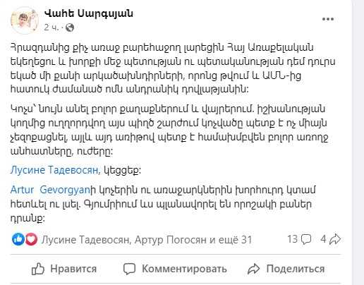 Այսօր իր ծառայամիտ խմբով Հրազդան քաղաք էր ժամանել ԱՄՆ֊ի Գլենդել քաղաքում ապրող և «facebook» սոցիալական ցանցում գրանցված Անդրանիկ Դովլաթյան անունով (Andranik Dovlatyan) խառնակիչ ստահակը, ով վերջերս հայհոյանք և զրպարտություն պարունակող ուղիղ եթերներով փորձում է արշավ սկսել Ն.Ս.Օ.Տ.Տ Ամենայն Հայոց Կաթողիկոսի, Շիրակի թեմի առաջնորդ Տ. Միքայել եպիսկոպոս Աջապահյանի և այլ բարձրաստիճան հոգևորականների դեմ։ Ամերիկայից ուղղորդված այս սրիկան Սահմանադրության հրապարակում փորձեց վարել իր կեղտոտ արշավը, բայց, հանդիպելով հավաքվածների ակտիվ հակահարվածին, անեծքներին և դժգոհություններին` հեռացավ քոռ ու փոշման։