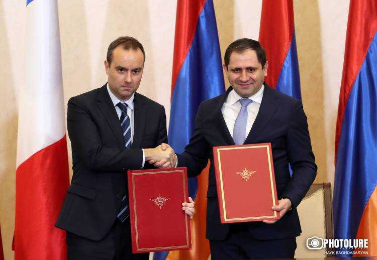 Ֆրանսիացի լրագրողը Պապիկյանին հարցրեց` վտանգ կա՞ Ադրբեջանի կողմից, դա՞ է ստիպում Երեւանին նոր պայմանագիր կնքել։ Նա ասաց. «ՀՀ-ն զենք-զինամթերք գնում է՝ սեփական տարածքային ամբողջականությունը պաշտպանելու նպատակով։ ՀՀ-ի կողմից գնվող զենք-զինամթերքն ուղղված չէ որեւէ երկրի նկատմամբ ագրեսիայի։ Չեմ կարող հերքել, որ կա վտանգ։ Վտանգը տեսանելի է առկա հռետորաբանությունից։ Մեր պարտավորությունն է՝ պաշտպանել մեր երկրի տարածքային ամբողջականությունը, սուվերենությունը։ Անկախ նրանից՝ մենք առաջիկայում խաղաղության պայմանագիր կնքելուց հետո ինչ անվտանգային իրավիճակ կունենանք, ՀՀ զինված ուժերը շարունակելու են պաշտպանական զենք-զինամթերքի գնումը, եւ մեր այսօրվա ստորագրած պայմանագրերը հենց դրա մասին են»։