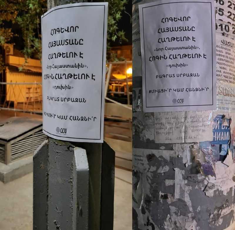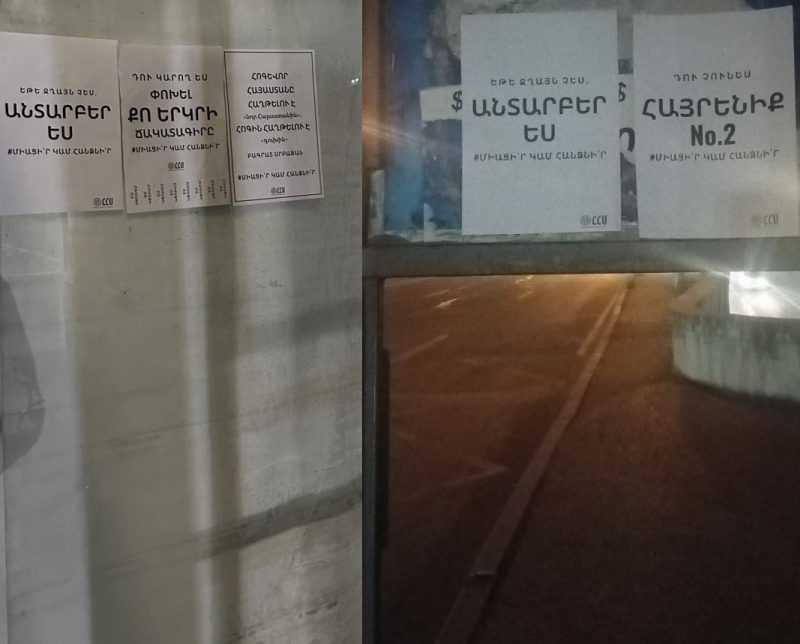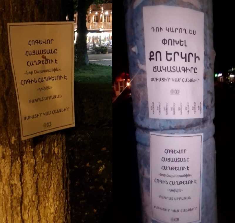Այսօր վաղ առավոտյան Միհրան Պողոսյանի գլխավորած «Հայոց Համազգային Միասնություն» կուսակցությունը, ի աջակցություն Տավուշի և Հայաստանի առկա ու փաստացի սահմանների անձեռնմխելիության, Երևանի բոլոր վարչական տարածքներում թռուցիկներ է փակցրել։