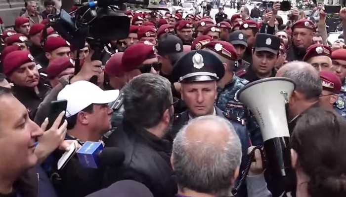 Ժուռնալիստների միության շենքին մոտենալիս Բագրատ Սրբազանին և երթի մասնակիցներին ընդառաջ դուրս եկան տասնյակ կարմիրբերետավորներ՝ ոստիկանության գնդապետի գլխավորությամբ։ Իր խոսքն ուղղելով նրանց՝ Բագրատ Սրբազանն ասաց․ «Տղե՛րք, ոչ ոք չի վախենում ձեզնից, հանդարտվեք, խաղաղ հետ գնացեք, էս ժողովրդին մի փորձեք ահաբեկել: Մենք կարգ խախտելու համար չենք, մեր՝ ո՛չ տրամադրությունն է այդպիսին, ո՛չ էլ՝ տրամաբանությունը։ Դուք ահասարսուռ տեսարան ստեղծելու համա՞ր եք. վախեցող չկա»։