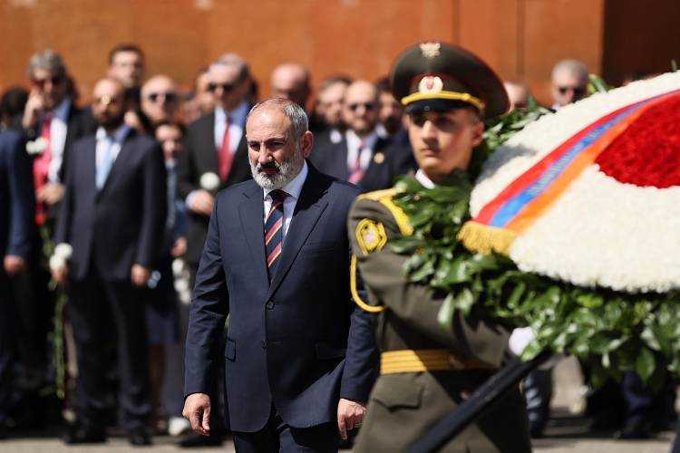 Կատարված խայտառակությունից փրկվելու եւ պատմությունը կեղծելու նկատառումներով, այցից առաջ հուշահամալիրի առջեւից հավաքել էին մինչ այդ տեղադրված բոլոր ծաղկեպսակները՝ նախկին նախագահների, Վեհափառի եւ քաղաքական ուժերի կողմից խոնարհված, որպեսզի ցույց տան, որ երկրում իշխանության գլուխն ինքն է՝ Փաշինյանը, եւ իրենով է սկսվել տոնական օրը։