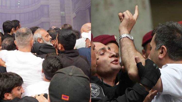 «Մայիսի 31-ին ՀՀ ՆԳՆ ոստիկանությունից հաղորդում է ստացվել այն մասին, որ նույն օրը՝ ժամը 15:00-16:00-ն ընկած ժամանակահատվածում, «Տավուշը հանուն հայրենիքի» շարժման կազմակերպիչների և մասնակիցների կողմից իրականացվող անհնազանդության գործողությունների ժամանակ պահպանության ենթակա՝ Երևան քաղաքի Վազգեն Սարգսյան փողոց 3 Կառավարական տուն 2 հասցեում գտնվող ՀՀ արտաքին գործերի նախարարության շենք մուտք գործելու նպատակով, ոստիկանական պատնեշը հաղթահարելու համար, բռնություն են գործադրել ոստիկանների նկատմամբ», — ասված է Քննչականի հաղորդագրությունում: — «Ակցիայի մասնակիցների շրջանակից նշված վայրում իրենց ծառայողական պարտականությունները կատարող ոստիկանների ուղղությամբ նետվել են քարեր, ջրով լցված տարաներ, ծխարձակող ճայթուկներ և այլ առարկաներ։ Զանգվածային անկարգությունների մասնակիցներից ոմանք այդ գործողությունների ժամանակ հնչեցրել են ՀՀ արտաքին գործերի նախարարության շենքը գրավելու կոչեր: Ելնելով ստեղծված իրավիճակից՝ տեղում ծառայություն իրականացնող ոստիկանների կողմից ձեռնարկվել են անհրաժեշտ միջոցառումներ, որի շրջանակներում 28 անձ տեղափոխվել է Ոստիկանության բաժին»: