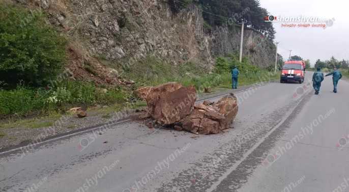 Դեպքի վայր է ժամանել Վանաձորի թիվ 36 հրշեջ-փրկարարական ջոկատից 1 մարտական հաշվարկ։ Տեղում պարզվել է, որ մի քանի հսկայական քարեր են պոկվել ու հայտնվել ճանապարհի երթևեկելի գոտում և այն հեռացնելու համար անհրաժեշտ է հատուկ տեխնիկա։ Ժամանել են պարեկները, որոնք անցել են ուժեղացված ծառայության մինչև ճանապարհն սպասարկող ընկերության ներկայացուցիչները հատուկ տեխնիկայով կմոտենան ու կհեռացնեն քարերը։