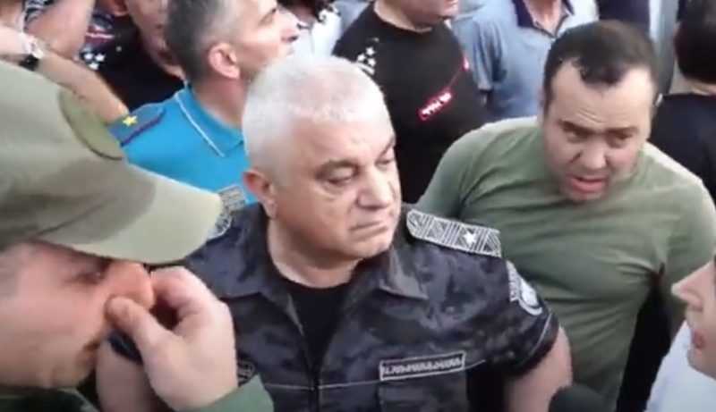 Հարցին` շշերի դիմաց նռնակ են կիրառո՞ւմ, նա գոռաց` մենակ շշեր չէին, լավ են արել, ոստիկանները մեղք չունեն, կիրառել են, որ հանդարտեցնեն: