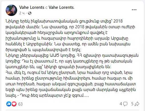 Նիկոլը երեկ ինքնախոստովանական ցուցմունք տվեց՝ 2018 թվականի մասին։ Նա փաստեց, որ 2018 թվականին օտար ուժերի կազմակերպած հեղաշրջման արդյունքում զավթել է իշխանությունը և հազարավոր հայորդիների արյամբ Արցախը հանձնել է Ադրբեջանին։ Նա փաստեց, որ ամեն բան նախապես ծրագրված և պայմանավորված է եղել։