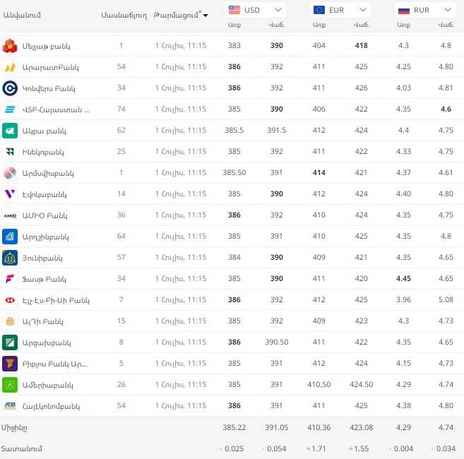 Տարադրամի փոխարժեքները՝ ըստ rate.am-ի:
