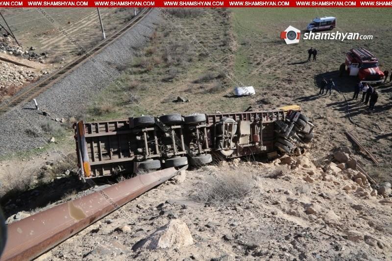 Shamshyan.com— ի տեղեկացմամբ՝ այսօր՝ մարտի 21-ին, խոշոր ու ողբերգական ավտովթար է տեղի ունեցել Արագածոտնի մարզում: Ժամը 14:3-ի սահմաններում Վրաստանի Հանրապետության քաղաքացի, 59-ամյա Զուհրաբ Կալանդիան իր վարած MAN մակնիշի բեռնատար կցորդիչով Արմավիր-Գյումրի ավտոճանապարհի 27-րդ կմ հատվածում՝ դեպի Արմավիր ընթանալիս, դուրս է եկել ճանապարհի երթևեկելի գոտուց, բախվել երկաթբետոնե արգելապատնեշներին և մոտ 60 մետր առաջ ընթանալով՝ բախվել ապառաժ քարերին և կողաշրջված վիճակում հայտնվել ձորում: