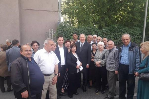 ՀՀ նախագահ Արմեն Սարգսյանն այսօր հանդիպել է իր նստավայրի դիմաց բողոքի ցույց անող «Նաիրիտ» գործարանի նախկին աշխատակիցներին: