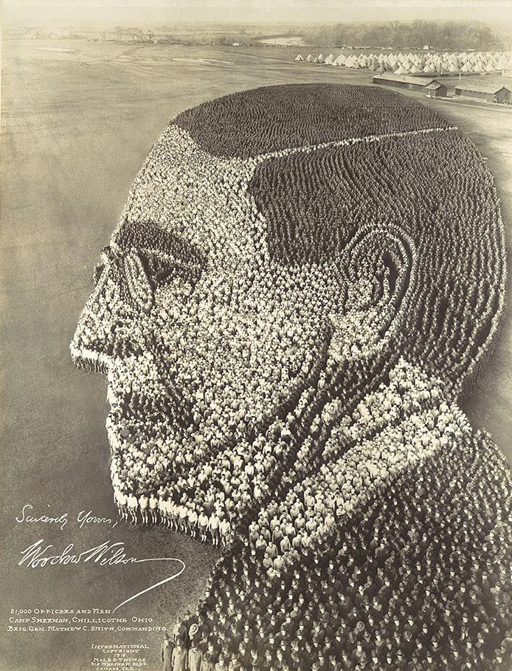21.000 ամերիկացի զինվորներ եւ սպաներ իրենց մարմիններով կազմել են ԱՄՆ գերագույն գլխավոր հրամանատար նախագահ Վուդրո Վիլսոնի կիսանդրին: