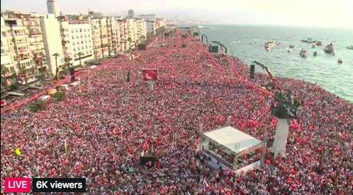 Թուրքիայի Իզմիր քաղաքում հարյուր հազարավոր մարդիկ են մասնակցել հաջակցություն ընդդիմադիր քաղաքական գործիչ Մուհարեմ Ինջեին հանրահավաքին (Ժողովրդահանրապետական կուսակցություն)։