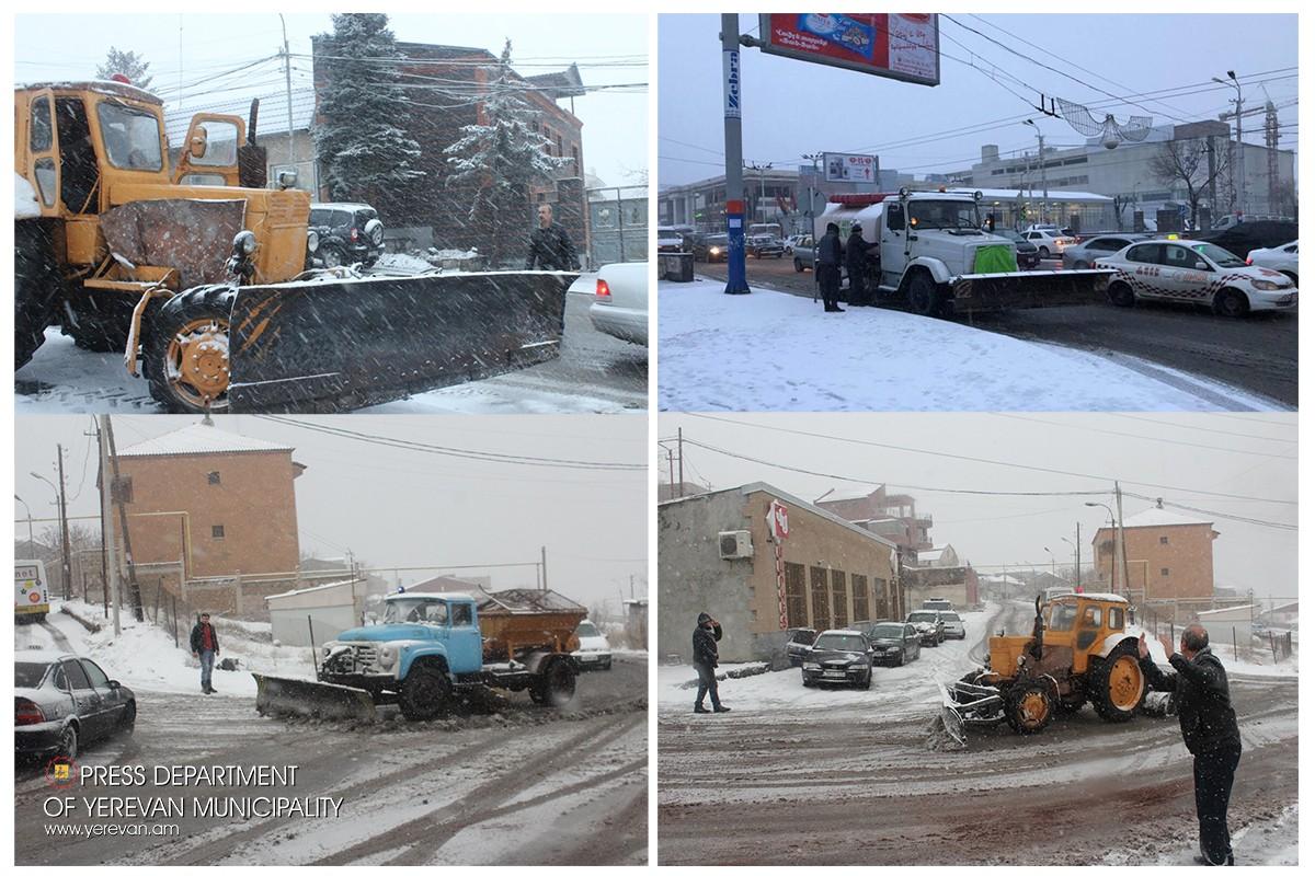 Դեկտեմբերի 28–ի գիշերվանից մայրաքաղաքի բարձրադիր վարչական շրջաններում մեկնարկել են ձյան մաքրման աշխատանքները: Տեղումների ինտենսիվությանը զուգահեռ, վաղ առավոտից գործընթացը ծավալվել է նաև մյուս վարչական շրջաններում: