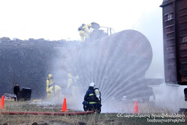 ՖՈՏՈՇԱՐՔ. Կողաշրջվում է 20 տ հեղուկ ամոնիակ պարունակող երկաթուղային գլանատակառը. Հայ-վրացական վարժանք 08.11.2017
