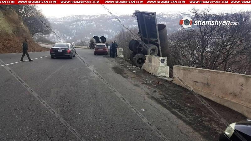 Տավուշի մարզում վարորդը Դիլիջանի ոլորանում Камаз-ով դուրս է եկել երթևեկելի գոտուց. Камаз-ը կախվել է ոլորանում 15.12.2017