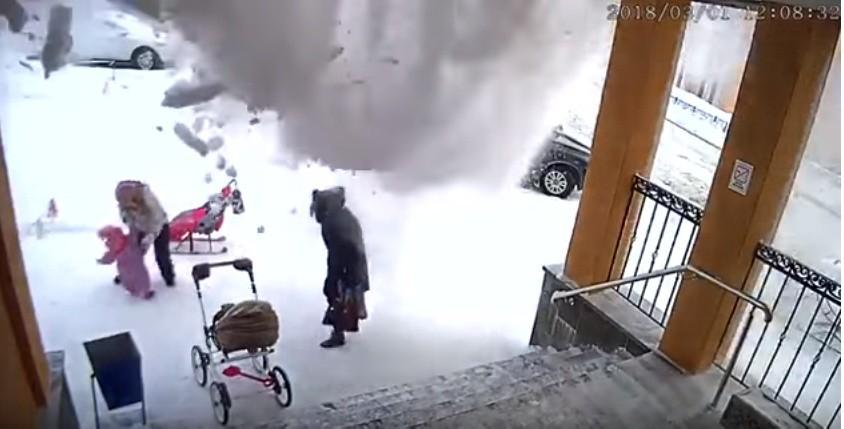 Ձյան հսկայական կույտը թափվել է երկու կանանց և 1.5 տարեկան երեխայի վրա: Տեսանյութը հրապարակել է ՌԴ Քննչական կոմիտեն 03.03.2018