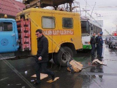 ՖՈՏՈ. Երեւանում վթարված տրոլեյբուսը վերանորոգողներն ընկել են 4 մետր բարձրությունից. նրանց վիճակը ծայրահեղ ծանր է 08.03.2018