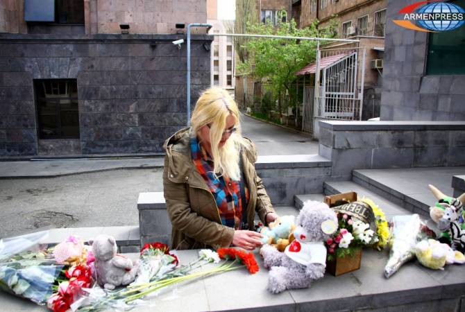ՖՈՏՈ. «Կեմերովո, մենք քեզ հետ ենք». ՀՀ-ում ՌԴ դեսպանատան առաջ ծաղիկներ են դրվում ի հիշատակ հրդեհից զոհվածների 27.03.2018
