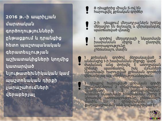 ՀՔԱՎ: Տեղեկանք 2016 թվականի ապրիլյան պատերազմական գործողություններից 2 տարի անց ՀՀ եւ ԱՀ զինված ուժերում կոռուպցիոն երեւույթների, չարաշահումների բացահայտման ուղղությամբ իրականացված գործողությունների վերաբերյալ 03.04.2018