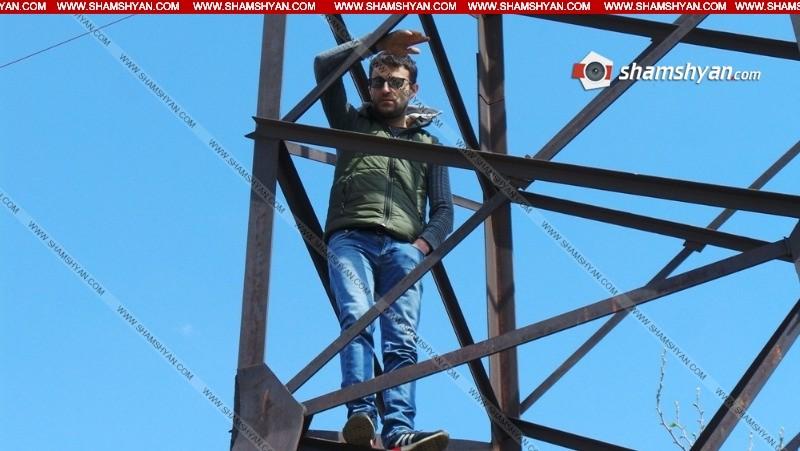 ՖՈՏՈ. Երևանում երիտասարդ տղան, ի նշան բողոքի, բարձրացել էր բարձրավոլտ էլեկտրալարերի սյան վրա և սպառնում էր լարերը կտրել. 19.04.2019