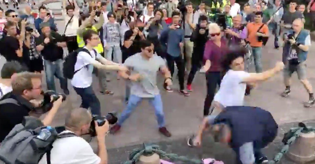 ՏԵՍԱՆՅՈՒԹ. Տղամարդը վնասում է Խաչատուրյան քույրերին պաշտպանող պաստառը և հարվածում ակտիվիստին 31.08.2019