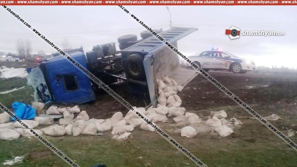 ՖՈՏՈ. Խոշոր ու ողբերգական ավտովթար Գեղարքունիքի մարզում. ցեմենտով բարձված MAN-ը կողաշրջվել է. վարորդի դին ավտոմեքենայից դուրս են բերել փրկարարները 07.04.2020